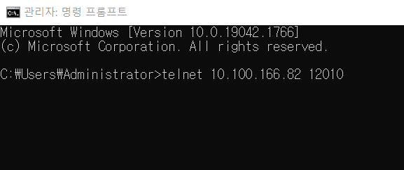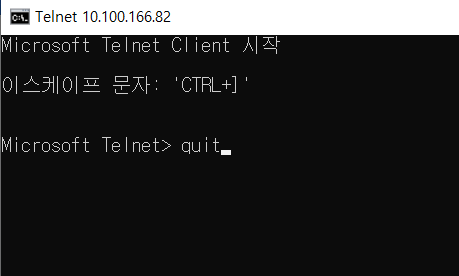 커맨드창 -> telnet ip(ip주소) port(port번호) 입력