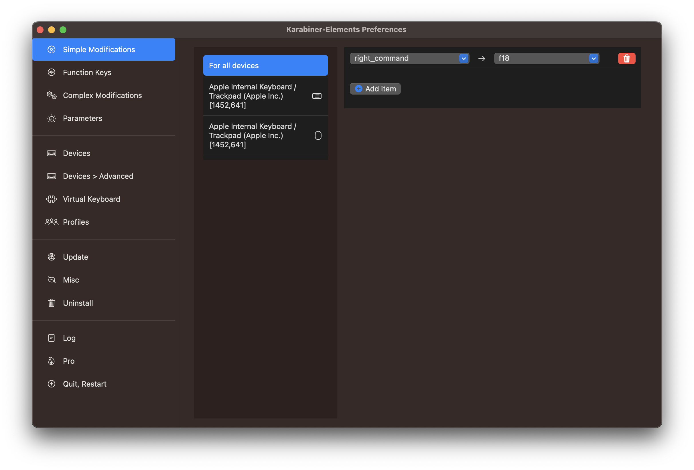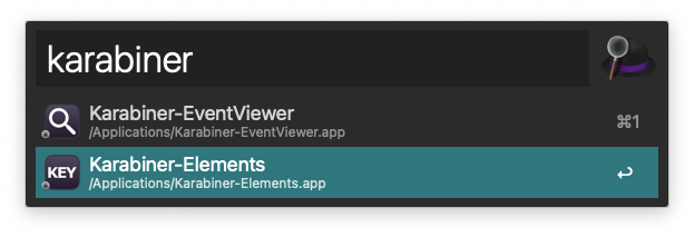 spotlight search 에서 Karabiner-Elements 를 실행 해 줍니다.