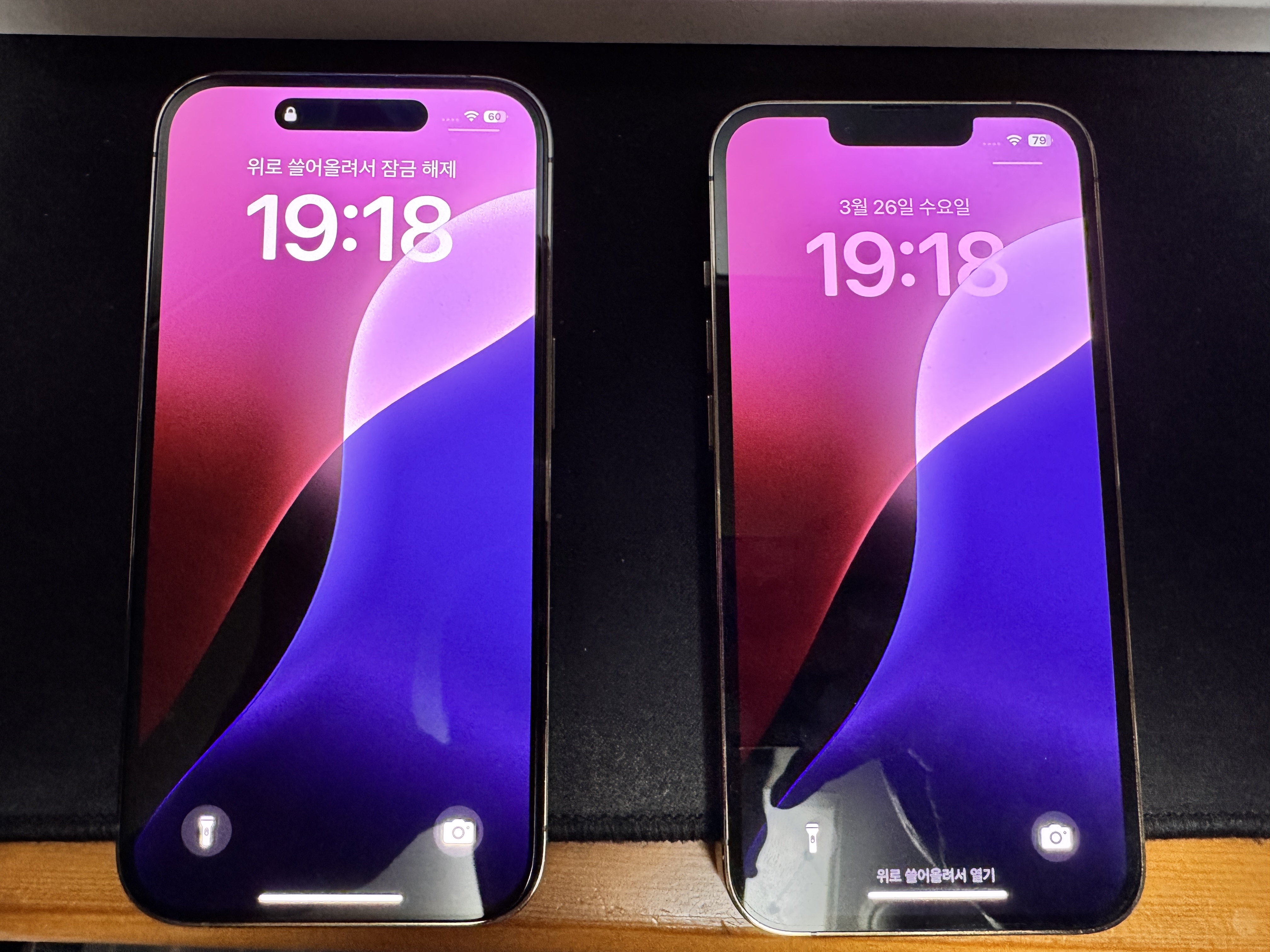 14 Pro가 아주 약간 더 오래가지만, 체감은 크지 않음.